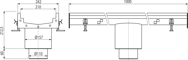 • Material sifon de pardoseală: oțel inoxidabil de 1,5 mm, DIN 1.4301