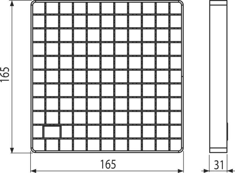 - Dimensiunea grătarului 165 × 165 mm