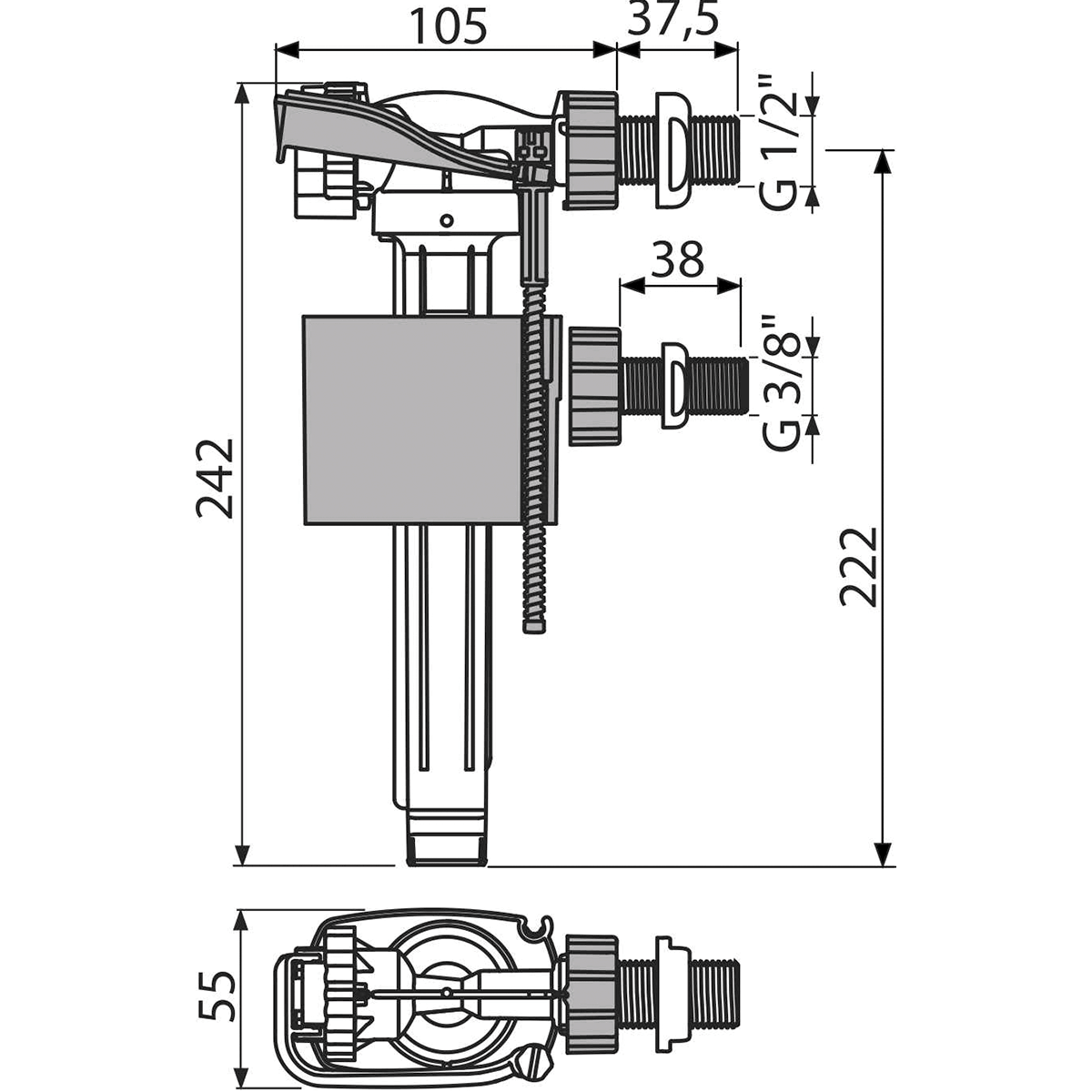 - Mecanism clătire universal pentru rezervoare WC ceramice si din plastic