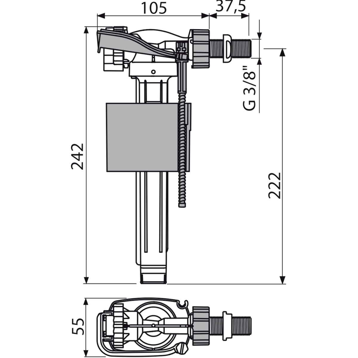 Flotor WC cu filet alamă, alimentare laterală, pentru rezervor WC din ceramică