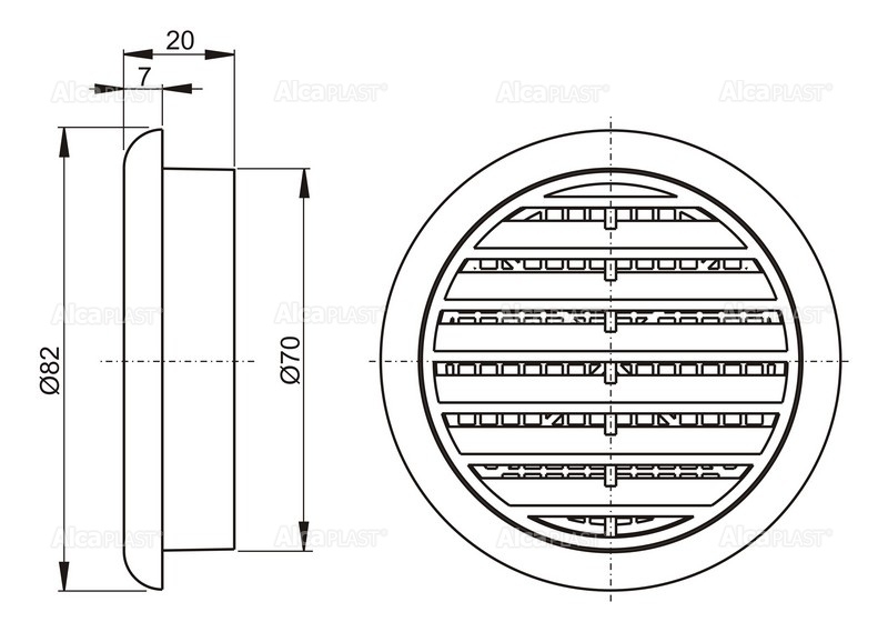Grilaj rotund ventilaţie din plastic Ø70 mm