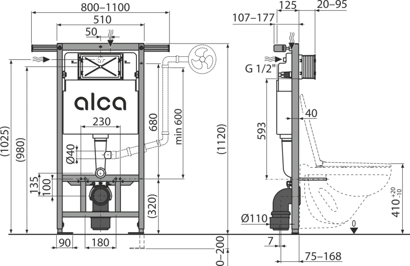 - Pentru instalarea vaselor de wc suspendate cu prinderea de 180 mm sau 230 mm