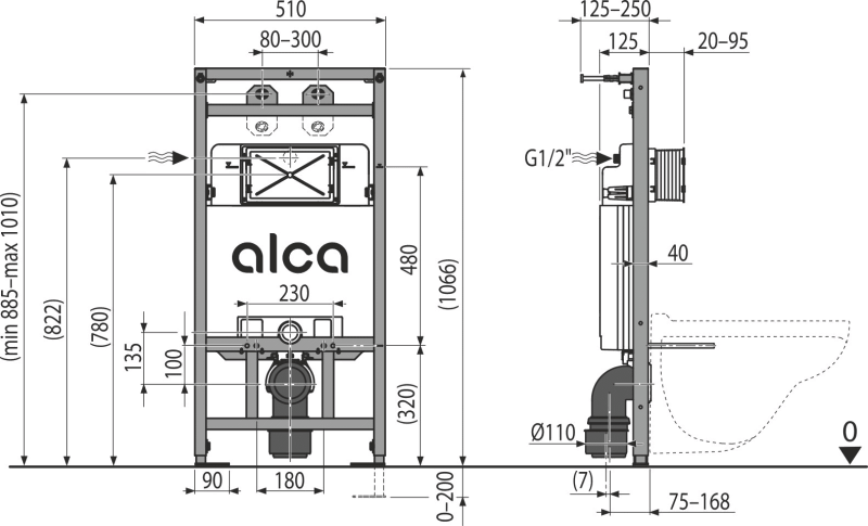 • Pentru chiuvete tehnice suspendate cu o distanță intre șuruburile de fixare până la 420 mm și evacuare Ø90/110