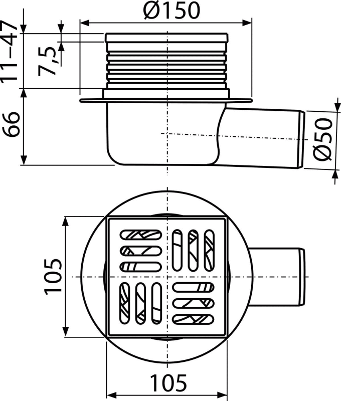 | APV0900 | Drain throat, grid 105×105 mm steel |