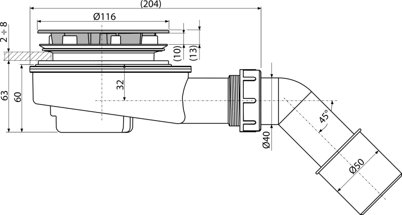 • Pentru cădițe de duș cu evacuare de Ø90 mm