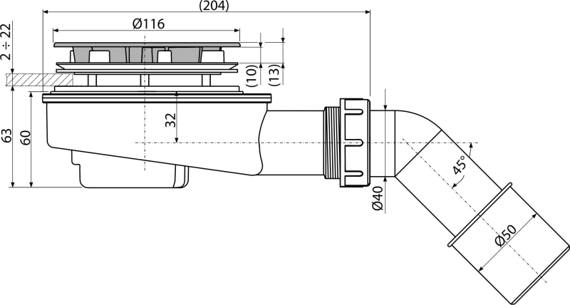 - Pentru cădițe de duș cu evacuare de Ø90 mm
