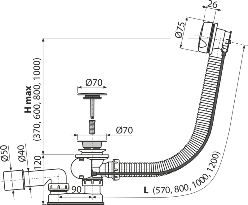 - Sifon anti miros din polipropilenă, rezistent termic și chimic, sudat longitudinal