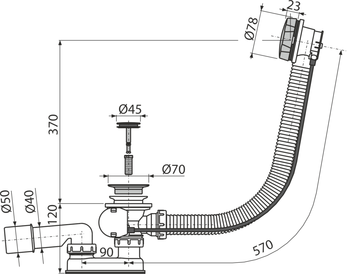 • Sifon anti miros din polipropilenă, rezistent termic și chimic, sudat longitudinal