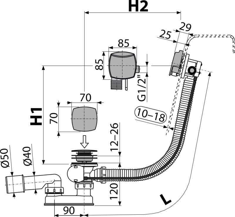 • Pentru căzi de baie cu scurgere de Ø52 mm