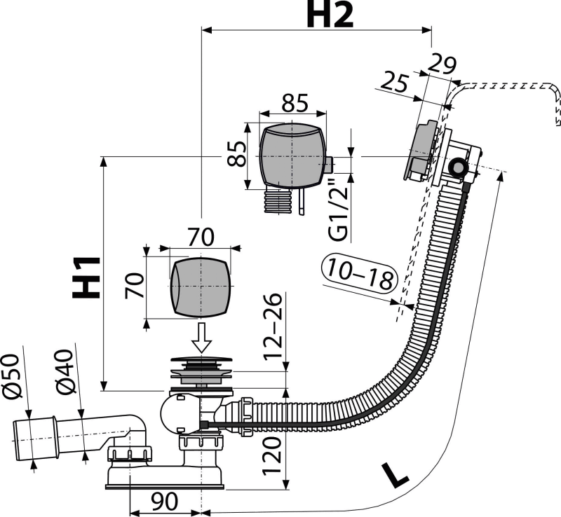- Pentru căzi de baie cu scurgere de Ø52 mm