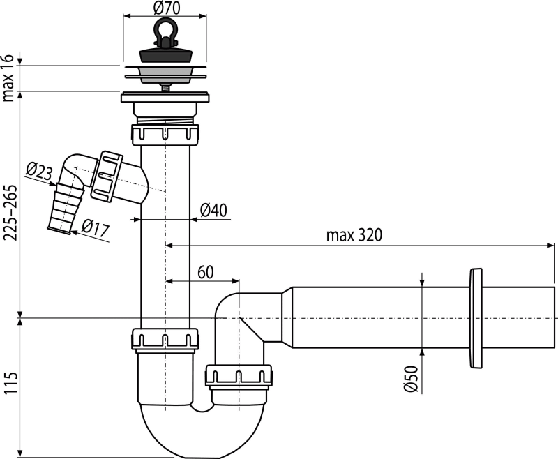 Sifon chiuvetă cu ţeavă, sită din oţel inoxidabil DN70 şi legătură maşina de spălat