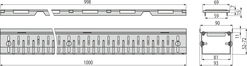 - Șuruburi de fixare asigură atașarea perfectă a grătarului de rigolă și elimină efectul de sunet în timpul utilizării canalului