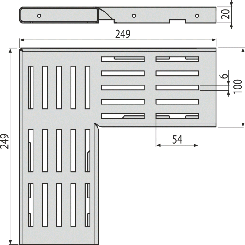 Grătar pentru canal de scurgere de colț de 100 mm, oțel inoxidabil