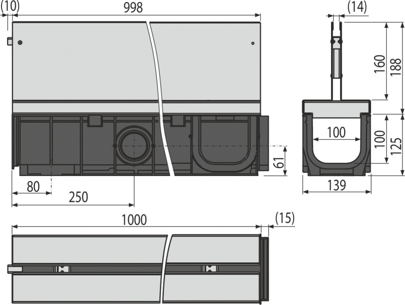 În ofertă este inclusă și o porțiune de service de jumătate de metru care poate fi ușor îndepărtată pentru a permite întreținerea de rutină a rigolei de exterior. Grătarele cu fantă sunt disponibile și pentru comandă.